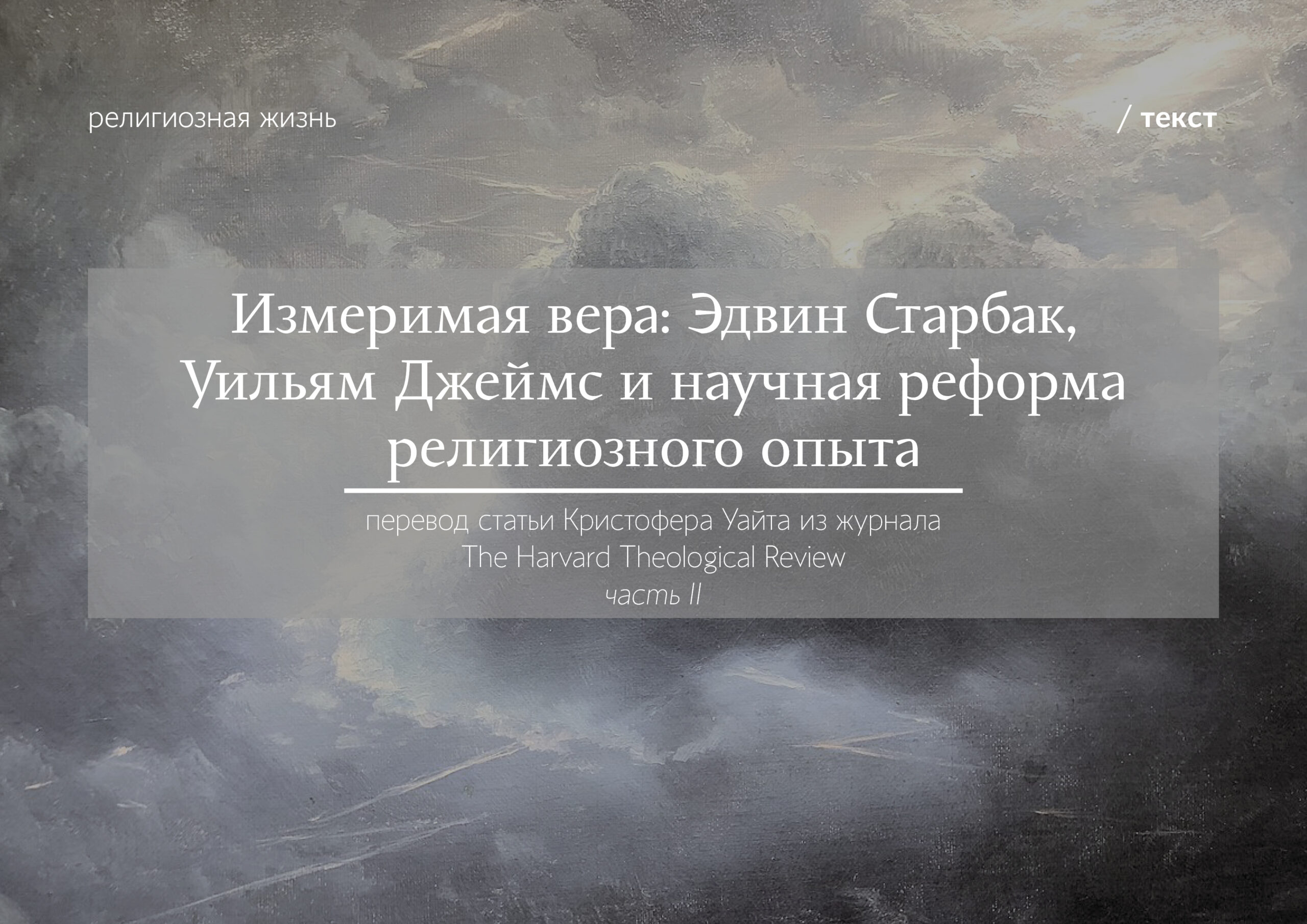 Когда Джеймс прочитал рассказы Старбака об обращении, этот момент, похоже, наступил. Впоследствии Джеймс неоднократно обращался к Старбаку с просьбой прислать еще, и, как я уже отмечал, он широко использовал коллекцию Старбака в своем «Многообразии»4. Работа Старбака стала основным источником для книги Джеймса.