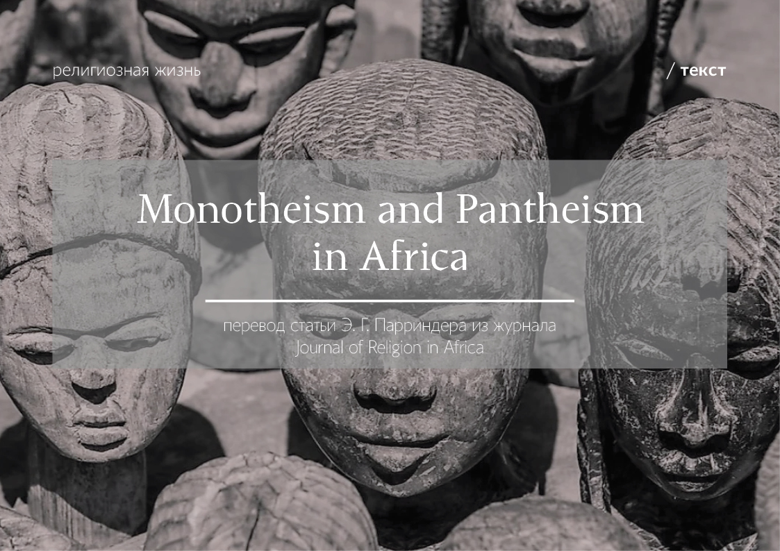 Почти сто лет назад Э.Б. Тайлор писал, что в строгом смысле слова «ни одно дикое племя монотеистов никогда не было известно. Также нельзя считать, что представители низших культур в строгом смысле являются пантеистами. Учение, которое широко распространено среди них и ведёт их по пути в одном или другом из этих направлений, — это политеизм, завершающийся господством одного верховного божества» [1]. Эти слова были смелыми в то время, когда об убеждениях многих «племён» знали мало и неточно, включая африканцев, которых Тайлор сам никогда не посещал. Позднейшие полевые исследования принесли лучшее знание, но немного общих теорий, хотя в последние годы предпринимались попытки объяснить разнообразие африканской религиозной мысли как в монотеистическом, так и в пантеистическом направлениях.