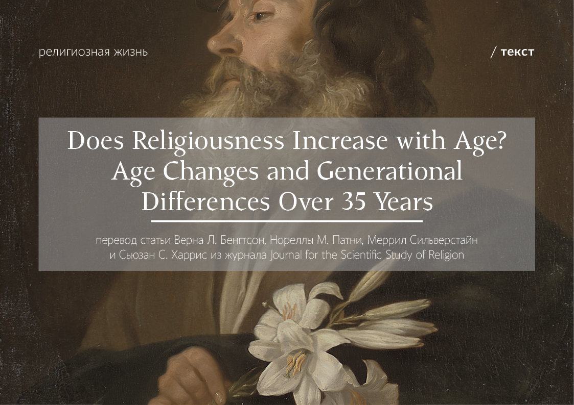 Увеличивается ли религиозность с возрастом? Для многих людей ответ — да. С точки зрения внутрииндивидуальных изменений общий возрастной тренд в наших лонгитюдных данных показывает постепенный рост субъективной религиозности на протяжении взрослой жизни и стабильность посещения религиозных служб. Лишь среди самых пожилых наблюдается снижение посещаемости, связанное с нарастающей физической немощью. Также наблюдаются когортные эффекты, отражающиеся в различиях возрастных тенденций религиозности у четырех поколенческих когорт. Данные углубленных интервью с членами подвыборки многопоколенческих семей придали смысл наблюдаемым в лонгитюдных панельных данных различиям между когортами. Мы выделили два когортно обусловленных изменения в религиозности: тенденцию, при которой понятие духовности все больше отделялось или дифференцировалось от понятия религии, которая все чаще воспринималась как связанная с организованной религией; а также сдвиг в представлениях о Боге и божестве.