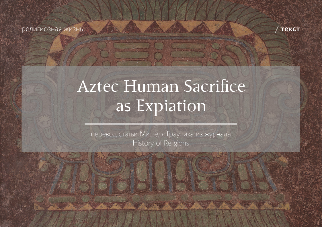 Многообразные формы ацтекских жертвоприношений вращаются вокруг двух полюсов: ритуального умерщвления божества и пищевого жертвоприношения, предназначенного для питания богов. Две основные категории жертв — омытые (то есть очищенные) рабы, воплощавшие богов, и военнопленные — в определенной мере подтверждают это деление, хотя между ними существовали многочисленные промежуточные формы. Так, убитые божества могли питать других богов; пленные же воплощали низших и безличных духов или божеств, называемых мимишкоа (Mimixcoas). Жертва могла представлять божество, мифического героя, пищу, дичь, оплодотворяющий плод или семя, маис, небесное тело или сочетать несколько значений одновременно, либо просто играть роль посланца, спутника умершего или «носилки» для более важных жертв. Очевидно, одно жертвоприношение могло иметь несколько уровней смысла: воспроизведение мифического убийства, омоложение или оживление богов, а также питание других божеств5. Но помимо этих космических целей, жертвоприношения могли одновременно преследовать и обычные, прагматические намерения: умиротворение богов для получения благ, передача посланий в иные миры, сопровождение умерших в загробный путь, освящение или укрепление мест, алтарей, зданий, лиц, а также искупление проступков и грехов ради обретения славной или счастливой посмертной жизни6. Цель настоящей статьи — показать, что фундаментальным смыслом и конечной целью ацтекских жертвоприношений было искупление грехов или проступков, а также обретение достойного посмертия, а пищевое или энергетическое толкование является лишь поздним и производным, которое так и не смогло вытеснить остальные значения.